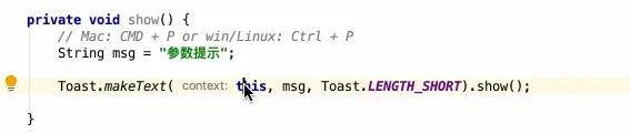 如果某个方法参数超级长,你不知道参数是什么怎么办?我们可以使用下面快捷键