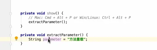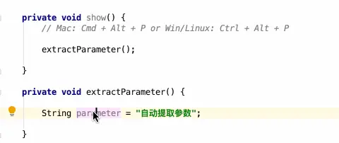 | 自动提取参数 | Mac: Cmd + Alt + P Win/Linux: Ctrl + Alt + P |