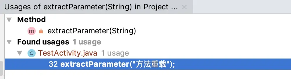 | 搜索某个方法是否被调用 | Mac/Win/Linux: Alt + F7 |