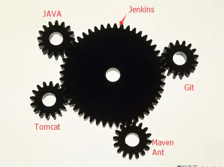 在一个软件的部署过程中会涉及到很多软件,例如版本控制的git(svn),构建打包的maven、容器tomcat,语言编译的jdk等等。每个软件都相当于一个齿轮,而Jenkins则像一个中间件,把各个齿轮接驳起来,并带动其他齿轮运转。