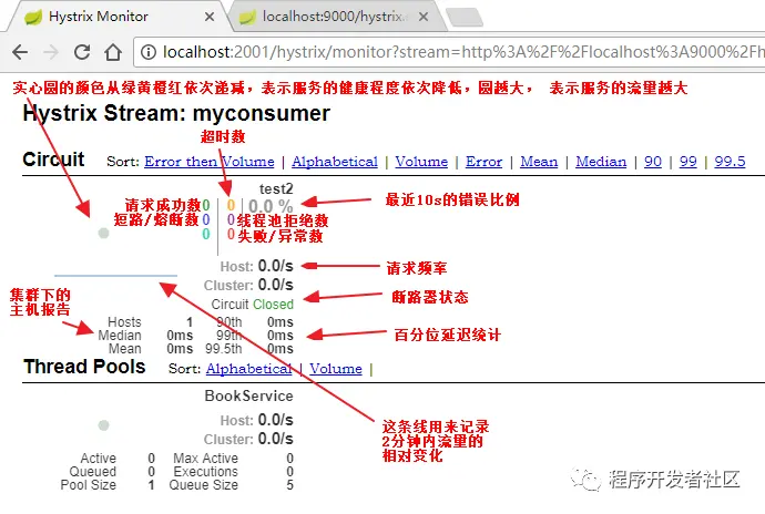 7、把http://localhost:9090/actuator/hystrix.stream填写到Hystrix Dashboard仪表盘上,直接在网上找了一个详细描述图,如下图