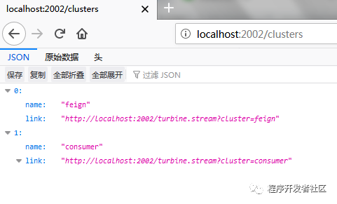 4、访问turbine的clusters端口http://localhost:2002/clusters,查看如图