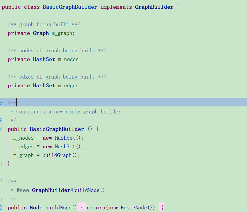 该生成器继承GraphGenerator,内部使用了一个有向图构造器BasicDirectedGraphBuilder来构造点、边和图。该构造器继承了BasicGraphBuilder,如下图源码
