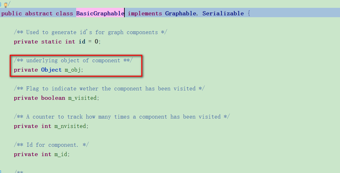 另外,Node继承的BasicGraphable中维护了一个Object类型的字段,我们可以在这个字段中放置一些标识该Node特性的信息。比如坐标,或者节点名称等。
