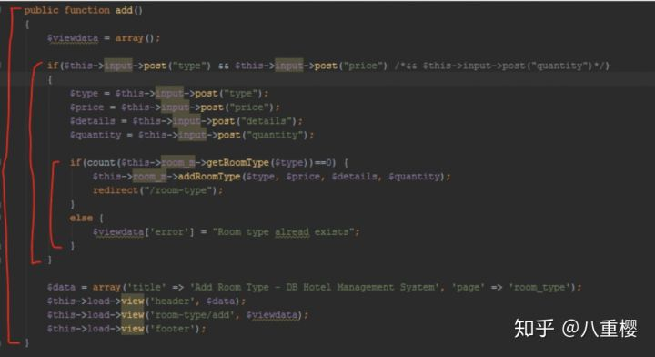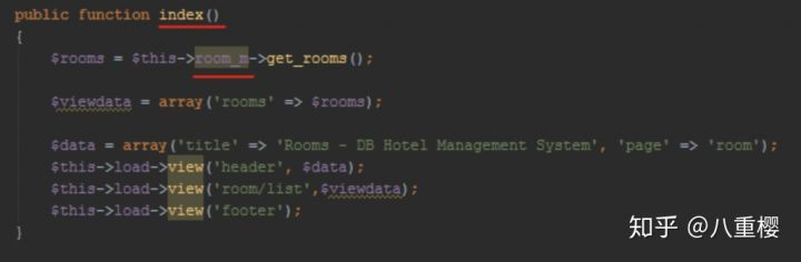 在后面的示例中,你会发现酒店管理系统有两个方法分别是 “index () ” 和 “ room_m () ”。 对我来说,我搞不清它们的目的是什么。我认为它应该很容易被理解,如果它们的命名都能够描述自己。