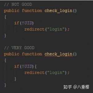 大多数编程语言都支持单行 if 申明,因为这样比较简单,所以一些开发就这么使用,但是这样不便于阅读,而且容易造成问题,因为一个空行就可以中断条件造成崩溃。看下下面两个示例的不同: