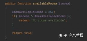 为了重构这个方法,我们可以指出 250 表示最大的房间数。为了替换硬编码,我们可以提取它到一个变量 $maxAvailableRooms 。现在对其他开发者来说,它变得更易被理解。