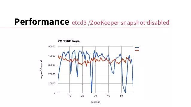 - zookeeper 会丢弃事件,etcd3 持有一个事件窗口,在 client 断开连接后不会丢失所有事件
