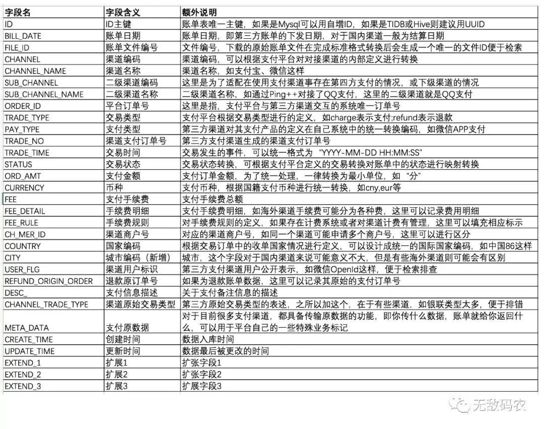 因为每个通道的数据格式可能不一样(比如,字段名字不一样),为了对账系统服务可以统一处理,所以我们需要把数据转换为统一的格式,这个格式(其实就是表和字段),是我们自己定义的。