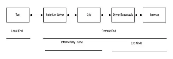 Selenium 3.x中的测试通过本地端的有线协议与节点处的浏览器通信。这种方法需要对API进行编码和解码。