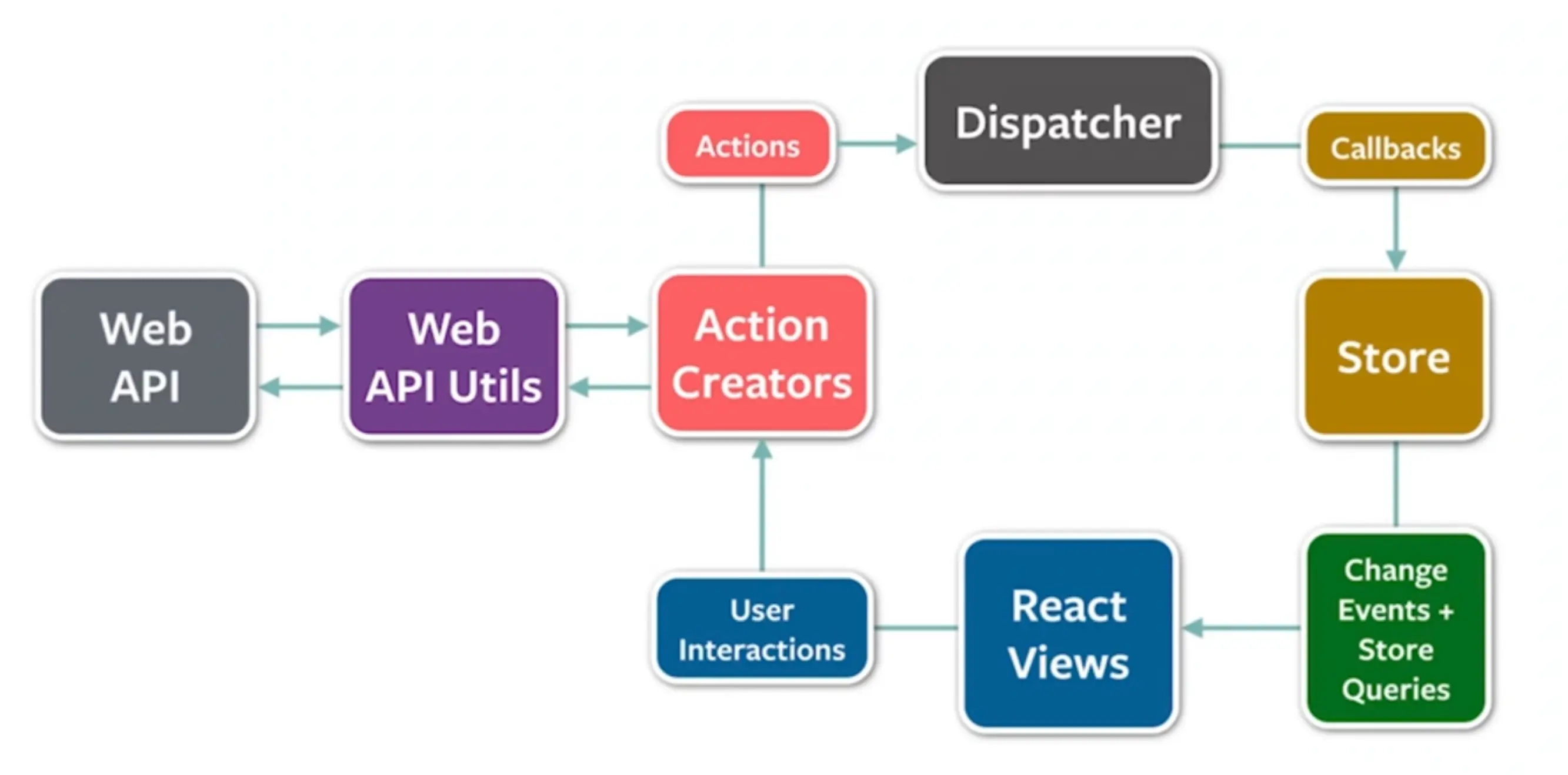 针对这个问题,React提出Flux架构,该设计模式的核心思想就是单向数据流。首先用户操作产生Action,Action经过Dispatcher再发送到Store,Store根据Action来进行处理,View是绑定到Store上的,此时View随Store更新而更新。