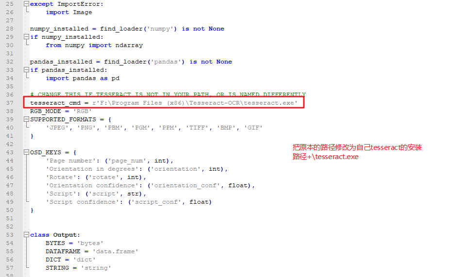3.上面步骤操作后,程序跑起来,还是出现如下错误: pytesseract.pytesseract.TesseractError: (1, 'Error opening data file \Program Files (x86)\Tesseract-OCR\tessdata/chi_sim.traineddata') 查询资料发现是没有下载chi数据库(自行百度下载对应版本的库安装到tessdata中)