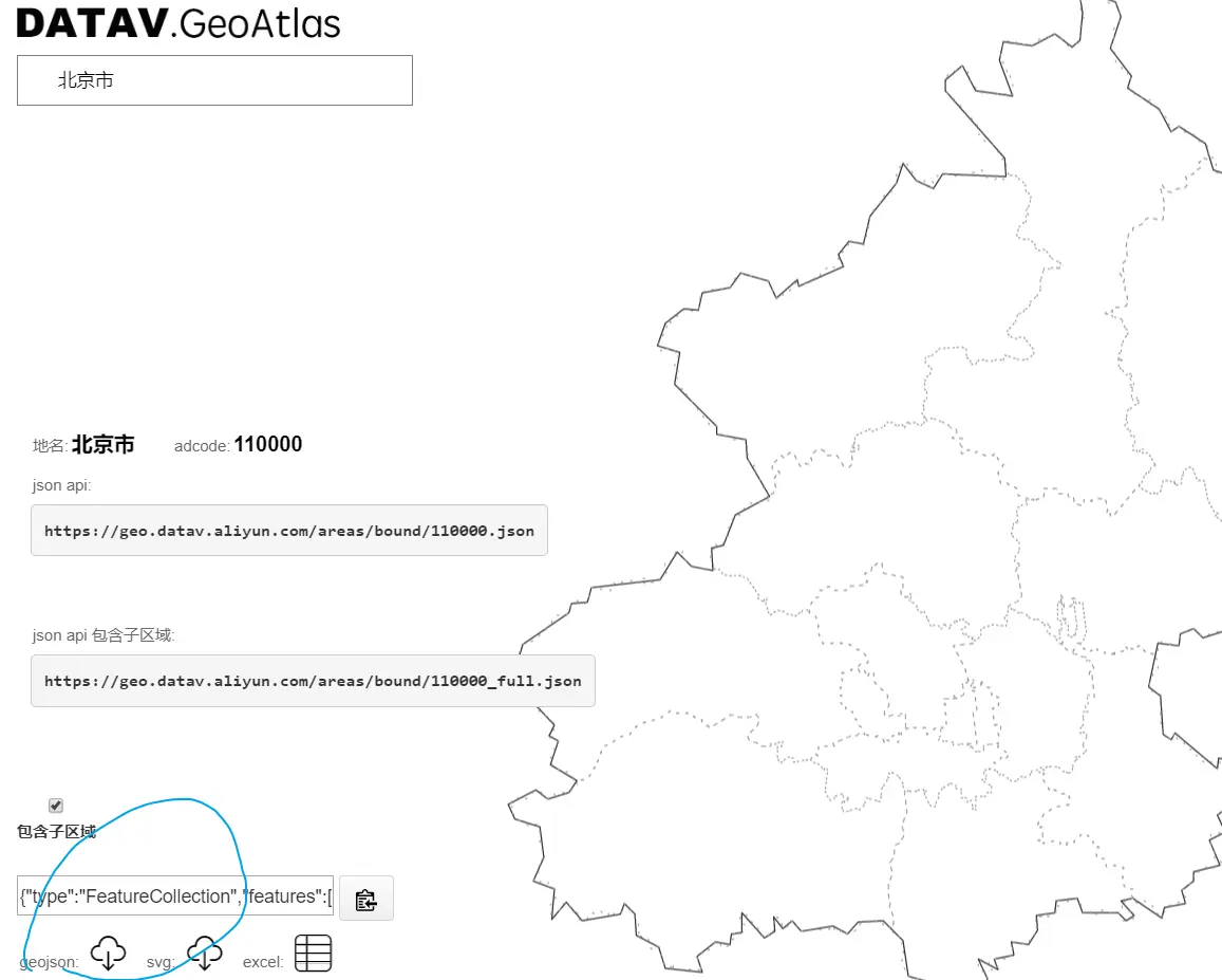 本文中选择北京市地图,下载geojson