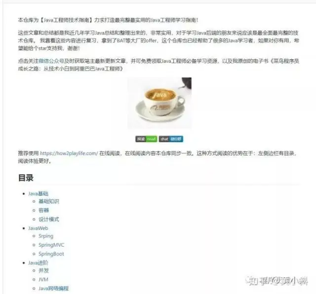 3、Java技术学习指南(GitHub仓库+PDF电子书) 本仓库名为【Java技术江湖】和我的技术公众号同名,本仓库涵盖大部分Java程序员所需要掌握的核心知识,力求打造为最完整最实用的Java开发者学习指南,如果对你有帮助,给个star告诉我吧,谢谢! github.com/h2pl/Java-Tutorial