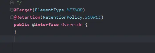 其实@Override可以理解为是一个标签,它并没有实际的逻辑处理,而实现逻辑的就是注解的用户。它本质就是一个 『标记式注解』,仅被编译器可知 。