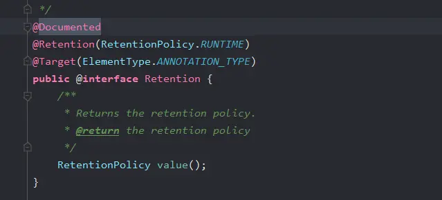 | RetentionPolicy.RUNTIME | 运行时保留,运行中可以处理 |