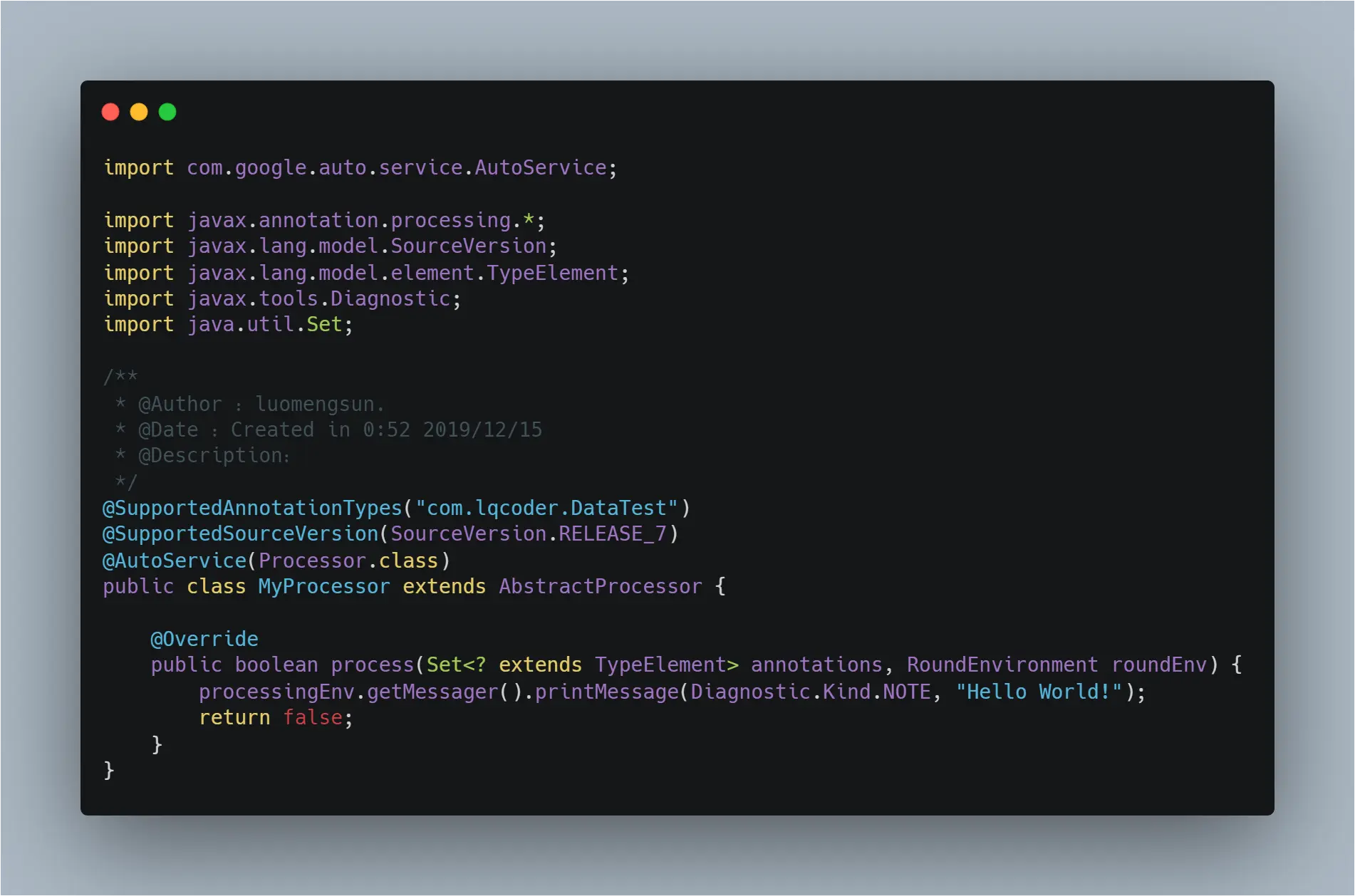 然后编写注解处理器,这里使用的AbstractProcessor,本文只限简单使用,如果有机会写一篇文章研究AbstractProcessor。