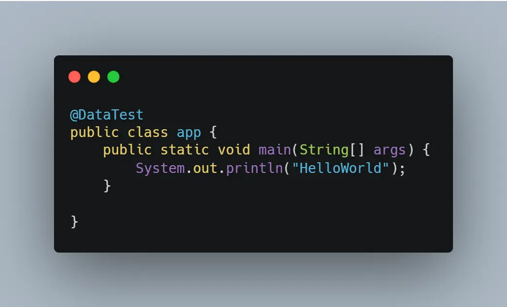 添加完成之后创建一个简单的类,然后加上@DataTest注解