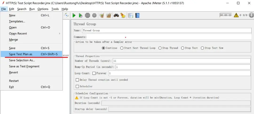 我们设置并录制好脚本,此时可以选择保存。然后我们就得到了一份jmx文件,于是,就可以用上面的命令加载这个文件实现无UI运行啦!