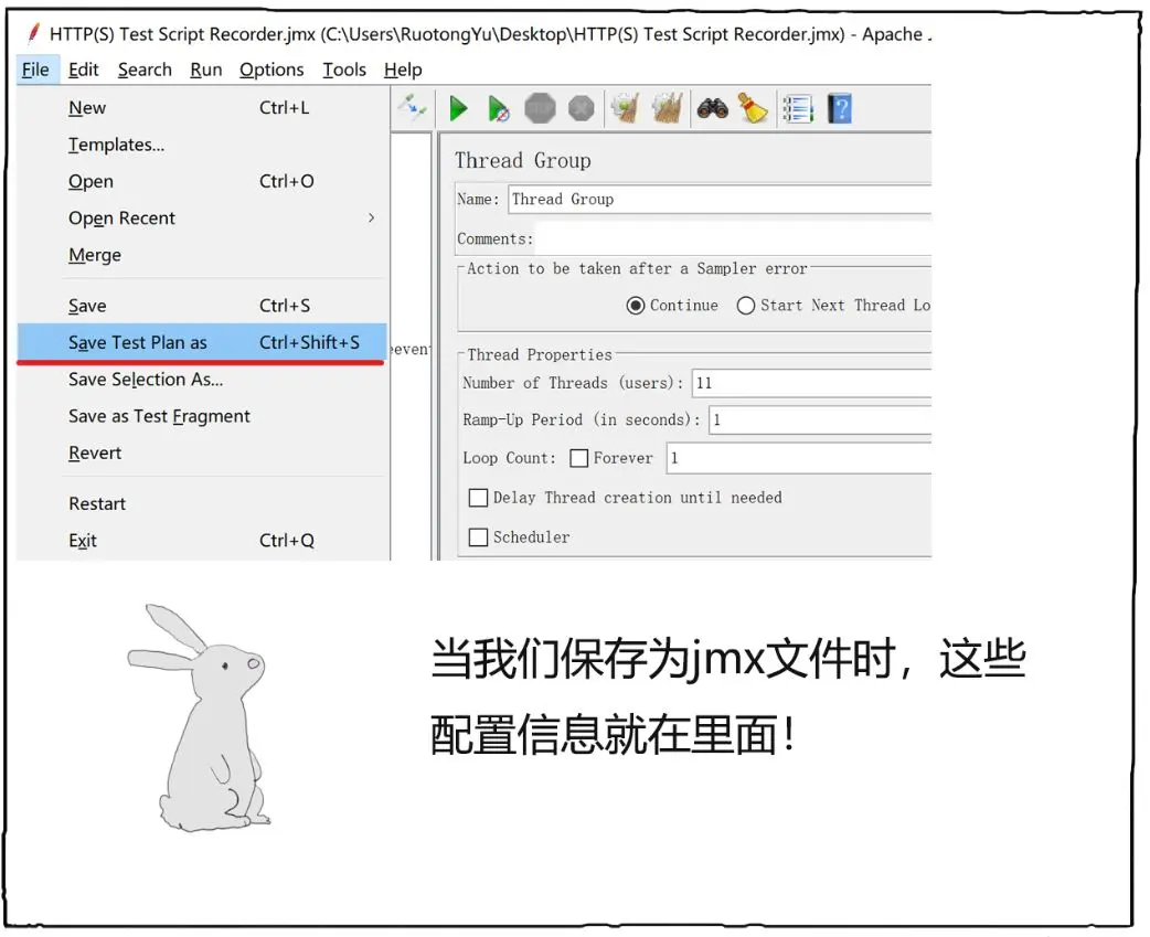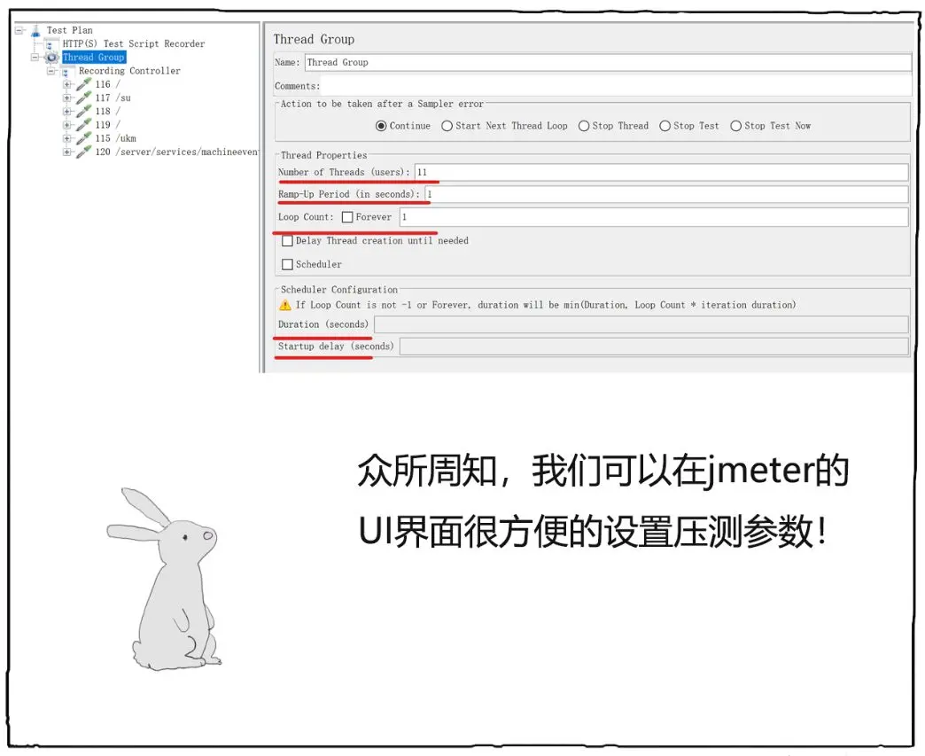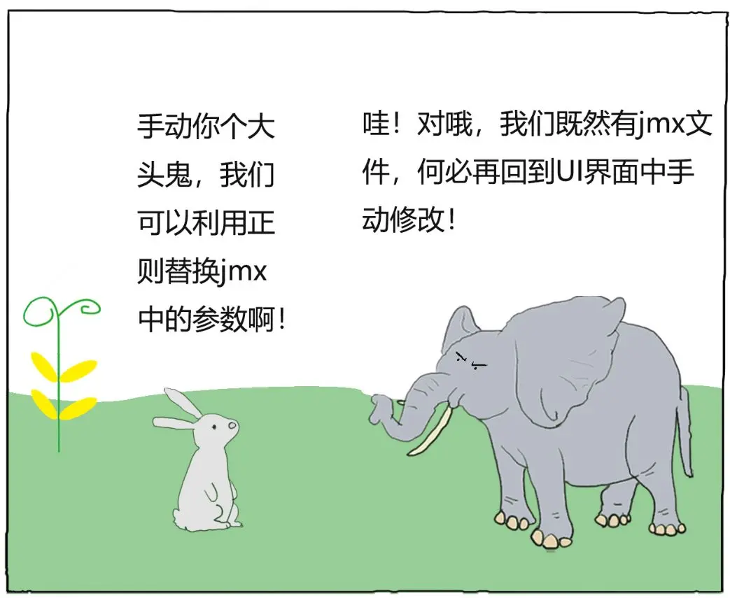 是的,小兔说的没错,就像下面的图片一样,我们在jmeter的UI界面中配置的参数信息全在jmx文件中,比如并发数为:11