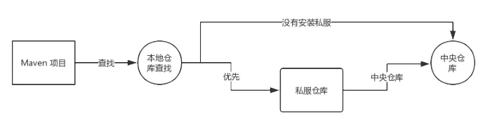 | 私服仓库 | 一般来说是公司内部搭建的 Maven 私服,处于局域网中,访问速度较快,这个仓库中存放的 jar 一般就是公司内部自己开发的 jar |