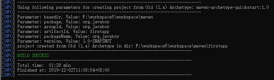 mvn archetype:generate -DgroupId=org.javaboy -DartifactId=firstapp -DarchetypeArtifactId=maven-archetype-quickstart -DinteractiveMode=false