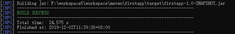 添加完成后,执行打包命令,注意执行所有命令时,命令行要定位到 pom.xml 文件所在的目录,看到如下提示,表示项目打包成功。