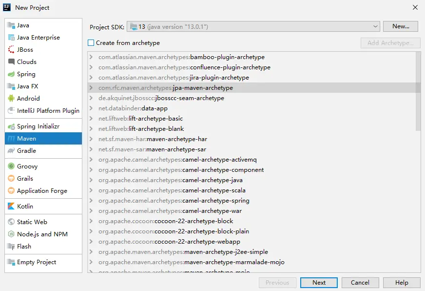 如果勾选上 Create from archetype ,则表示可以根据一个项目骨架(项目模板)来创建一个新的工程,不过,如果只是创建 JavaSE 项目,则不用选择项目骨架。直接 Next 即可。然后填入项目的坐标,即 groupId 和 artifactId。