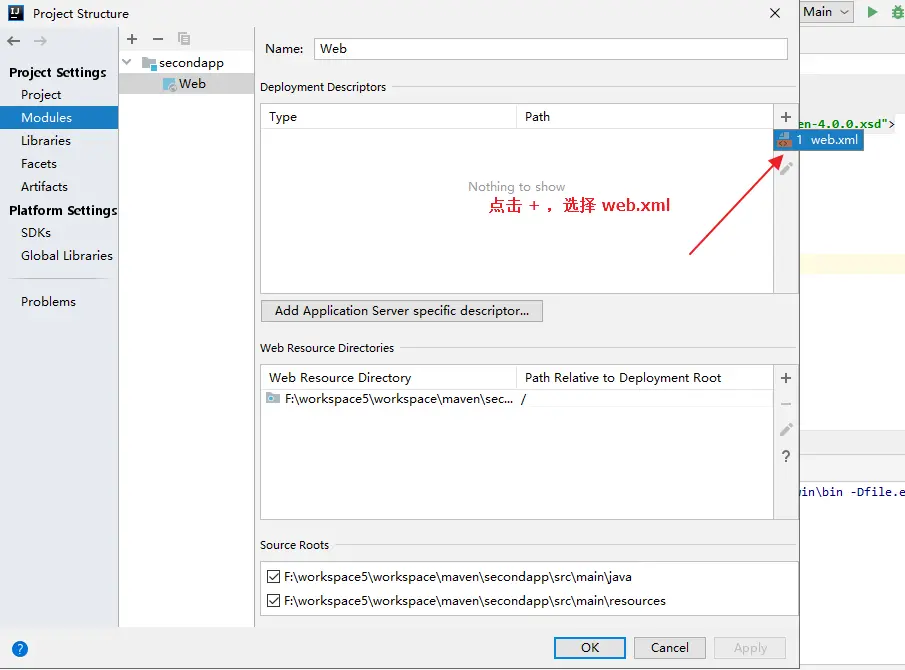 接下来,在 webapp 目录中,添加 web.xml 文件。