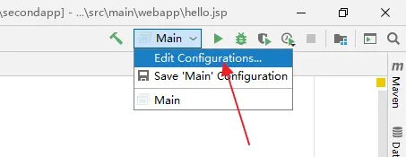 部署,首先点击 IDEA 右上角的 Edit Configurations: