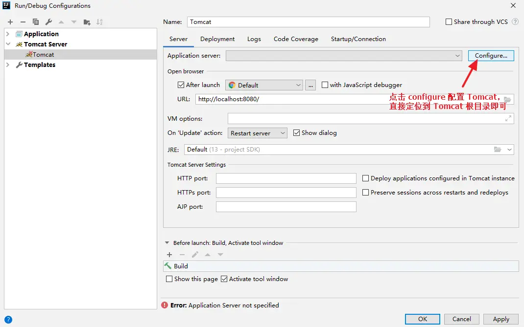然后,配置 Tomcat: