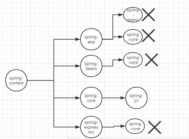 这个表示从 spring-context 中排除 spring-core 依赖。