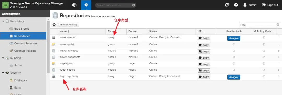 | group | 仓库组,包含代理仓库和宿主仓库 |