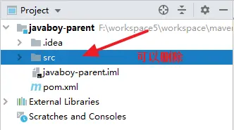 项目创建完成后,由于 parent 并不参与业务的实现,只是用来管理它的子模块,因此,src 目录可以将其删除。