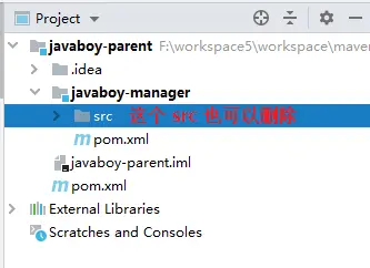 3.由于 javaboy-manager 本身也是一个聚合工程,因此,javaboy-manager 的 src 目录也可以删除。