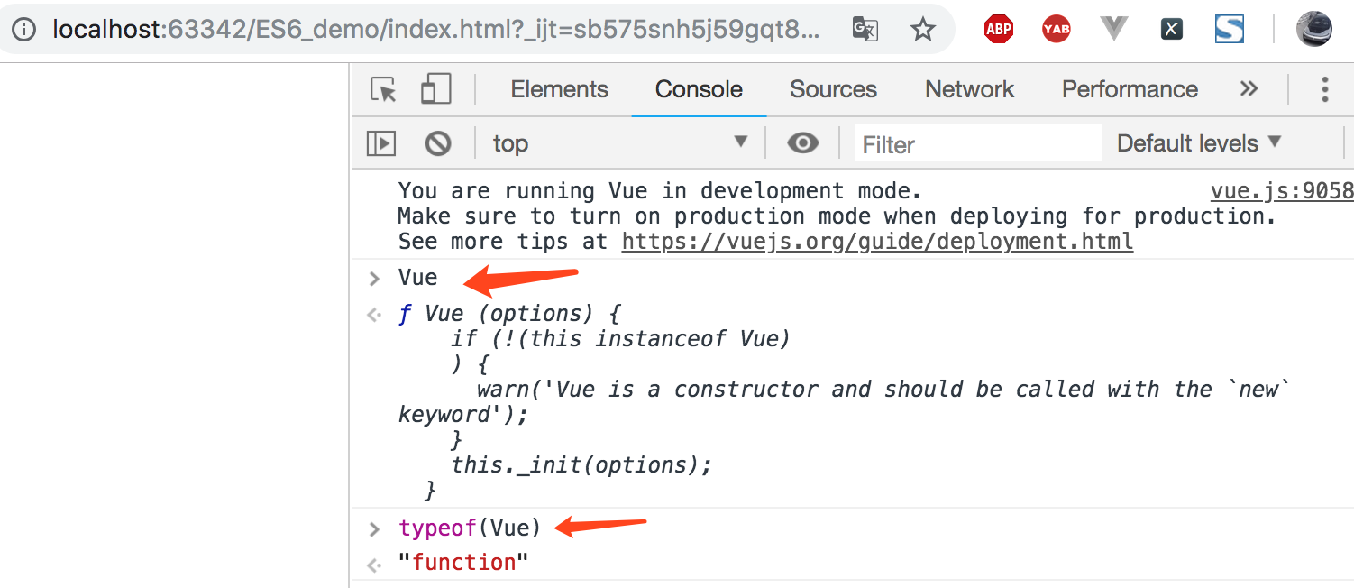 </body>引入vue.js文件后,Vue被注册为一个全局的变量,是一个构造函数。在网站控制台查看: