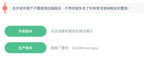 确认了解不同构建版本并在你发布的站点中使用生产环境版本,把 vue.js 换成 vue.min.js。这是一个更小的构建,可以带来比开发环境下更快的速度体验。(开发环境使用vue.js,生产环境使用vue.min.js)