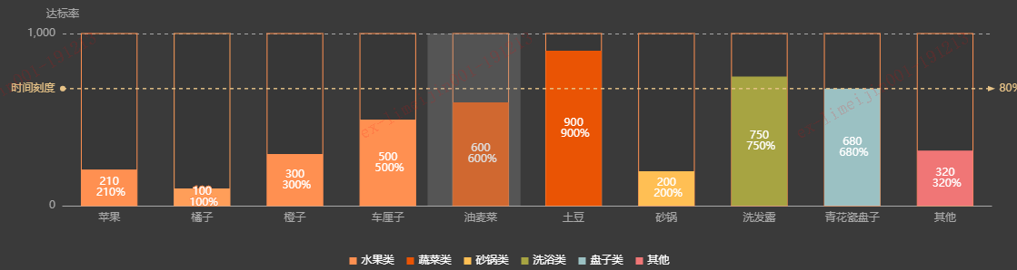 - 登高的柱状图总体,用实心的的柱状图渲染所占的比例
