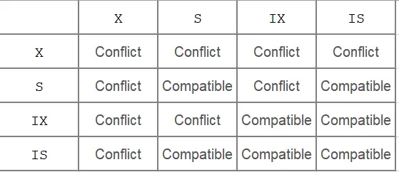 各种表级别锁的兼容性图: