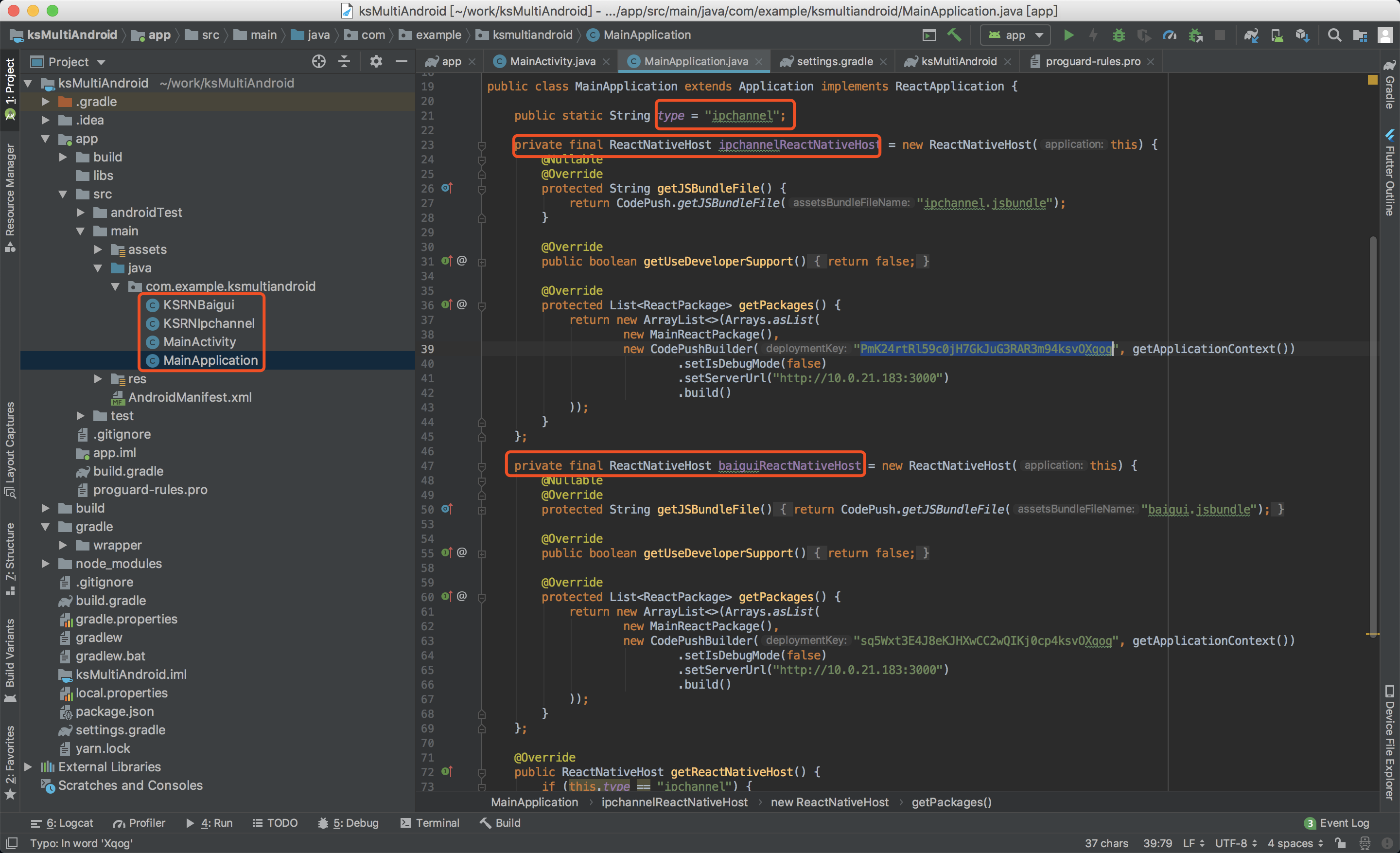 脚手架生成的项目里只有一个 ReactNativeHost ,我们在这需要定义 2 个,并依靠一个 type 对加载哪个 jsbundle 进行控制。