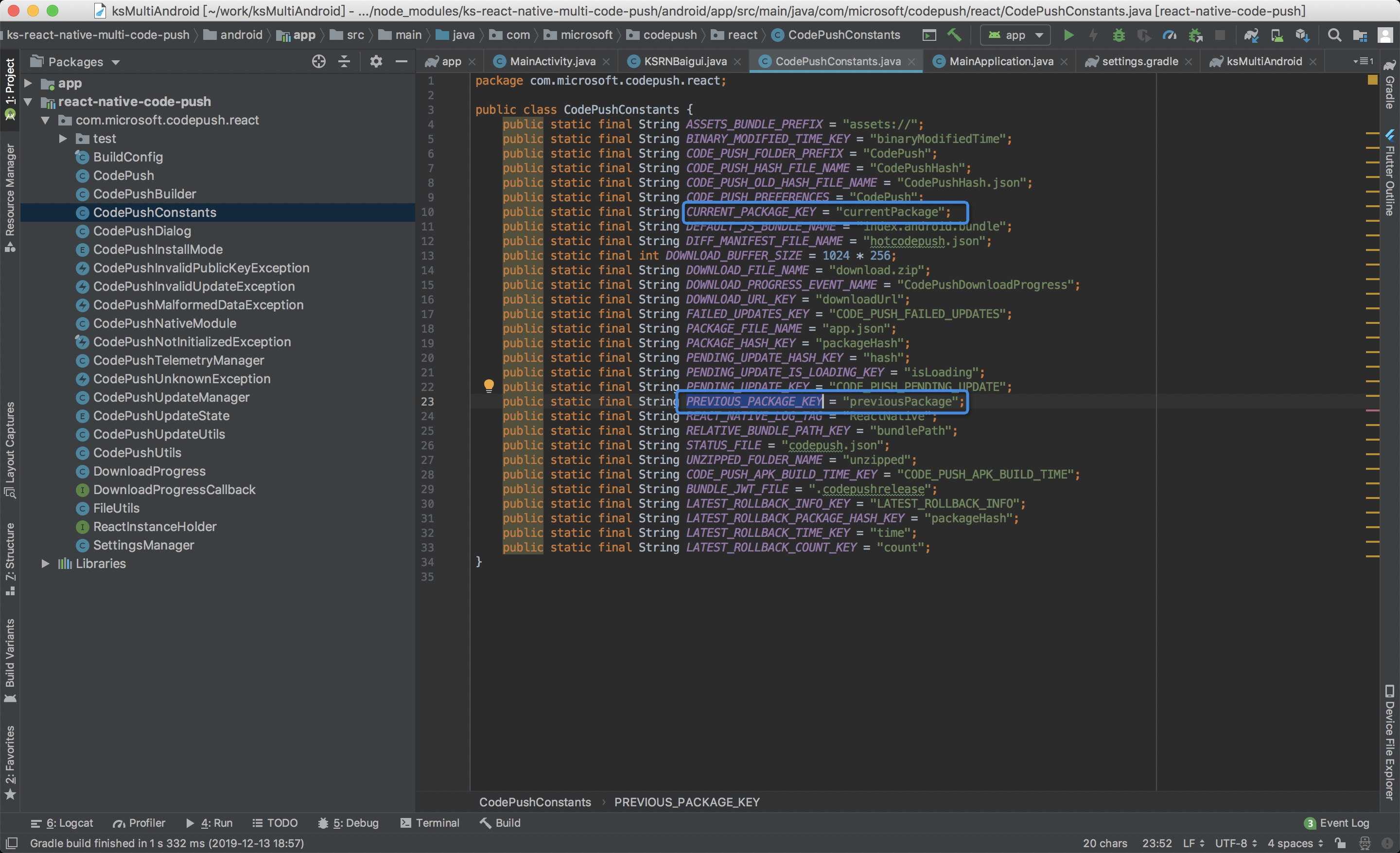 原理已经在 ios 部分介绍过了,改造 Android 的时候,就直接搜索了 currentPackage,最终在 CodePushConstants 中找到了他们。