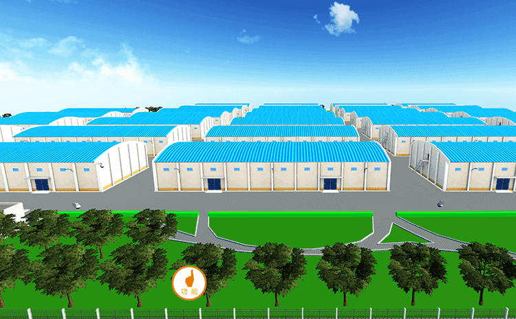 库区管理可视化:CamBuilder可低成本快速构建粮仓整体库区3D图,且库房等均对象化处理,不仅3D可视且可动态展示储藏、监控情况;