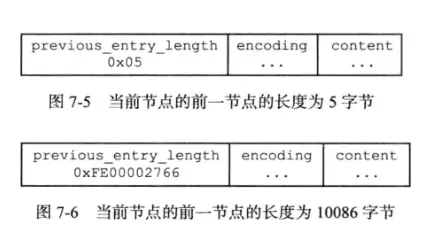- 如果前一个节点长度大于254字节,则长度为5字节。属性的第一个字节设置为0xFE(十进制为254),之后的四个字节则保存前一节点的长度。