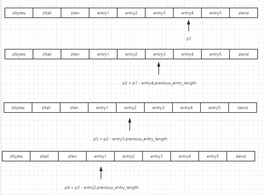 因为节点的previous_entry_length属性记录了前一个节点的长度,则可以根据当前节点的起始地址,计算出前一个节点的起始地址。