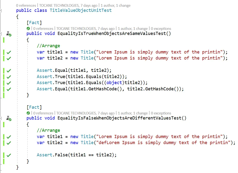 下面是Title值对象的单元测试,我要看看两个拥有相同的Value的Title是否相等