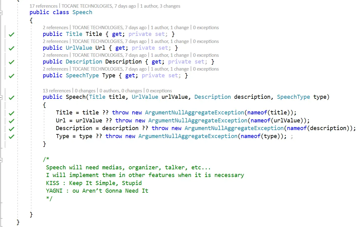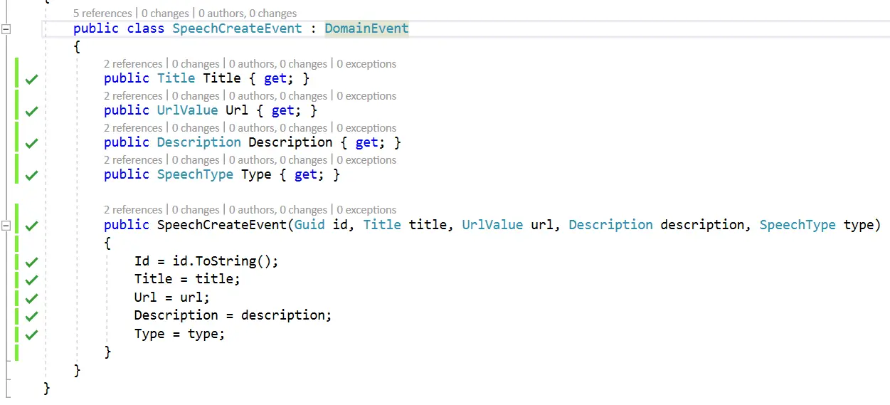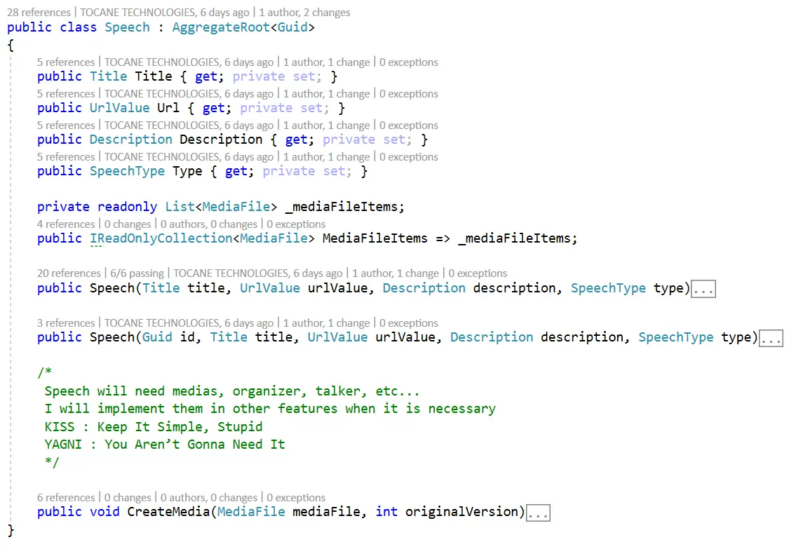 由于Speech实体是一个聚合根,它需要继承AggregateRoot,Speech实体的Id字段是一个Guid