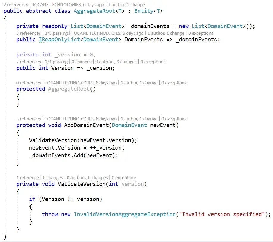 这里,由于实现了事件源策略,所有有界上下文引发的事件都会保存在我的事件仓库里。