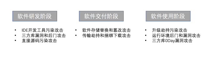 历史上著名的 APPLE Xcode IDE 工具攻击就是发生在软件研发阶段的攻击,攻击者通过向 Xcode 中注入恶意后门,在非官方网站提供下载,所有使用此 Xcode 的开发者编译出来的 APP 将被感染后门。同样著名的还有美国的棱镜门事件,亦是在大量的软件中植入后门程序,进行数据获取等恶意操作。