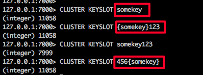 redis其实只会对key的{}中内容进行计算slot,不同key使用相同的{}内容计算出来slot相同。示例如下: