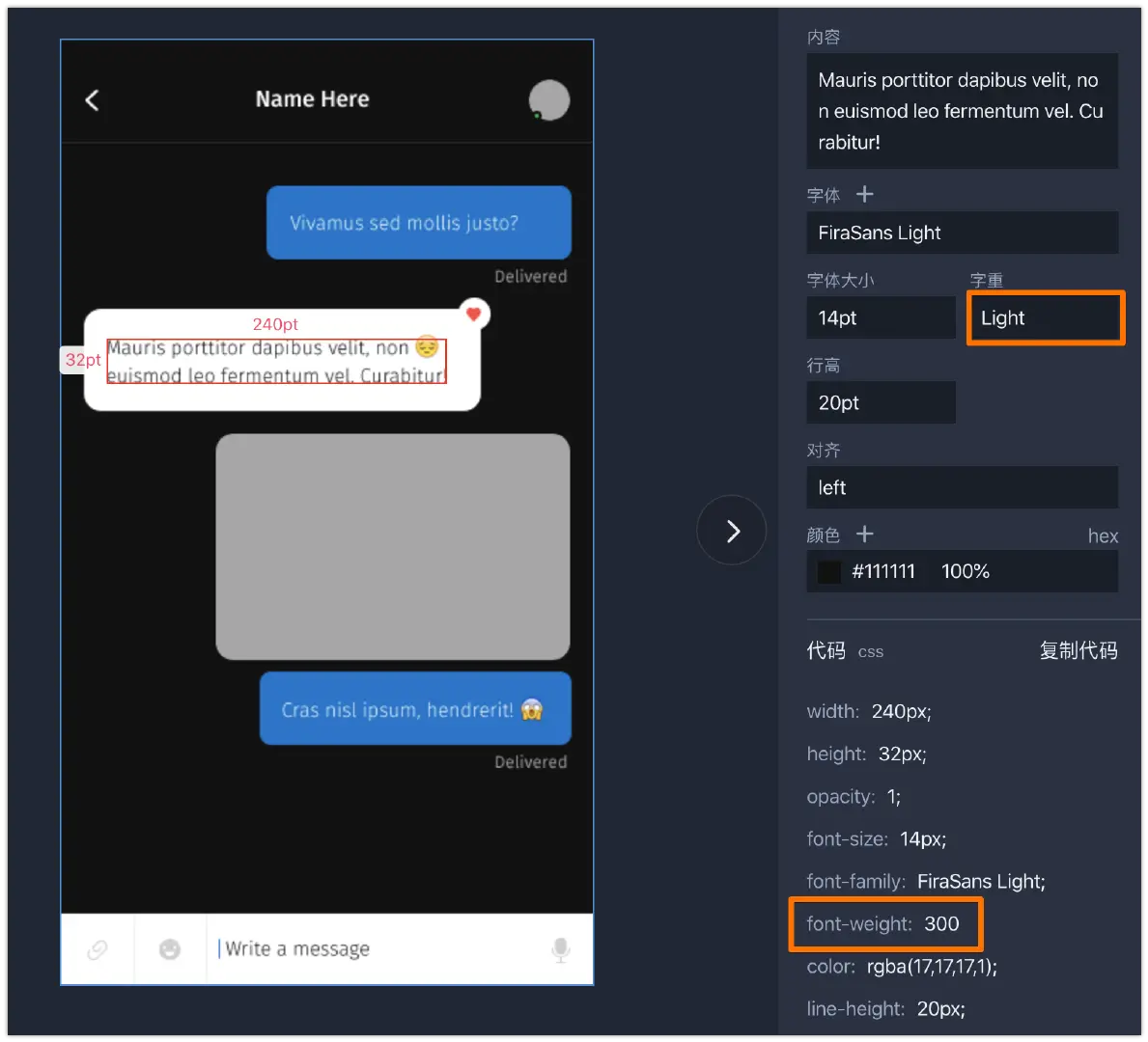 字体切图上传到摹客后,样式代码中会显示出font-weight对应的数字啦!开发人员常常会需要此类数据,一键复制摹客自动生成的代码,效率更高!